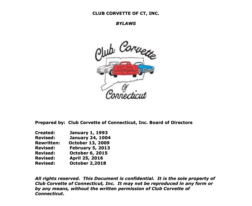 CLUB CORVETTE OF CONNECTICUT, INC. BYLAWS