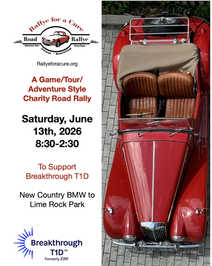 The 14th Annual Rallye for a Cure invites car enthusiasts to participate in a fun-filled day for the entire family. Owners of vintage, classic, sports, and modern cars are all invited to join in the fun of this Game-Tour-Adventure GTA Rallye. Each Rallye team consists of a driver and a navigator in one car. During the drive, navigators will be asked to record information about the routes in a Scavenger Hunt style. The $125 registration includes entry into the Rallye, road snacks courtesy of New Country BMW, and lunch. The day also includes an online auction, an Awards Ceremony, and parade laps on the Lime Rock track.